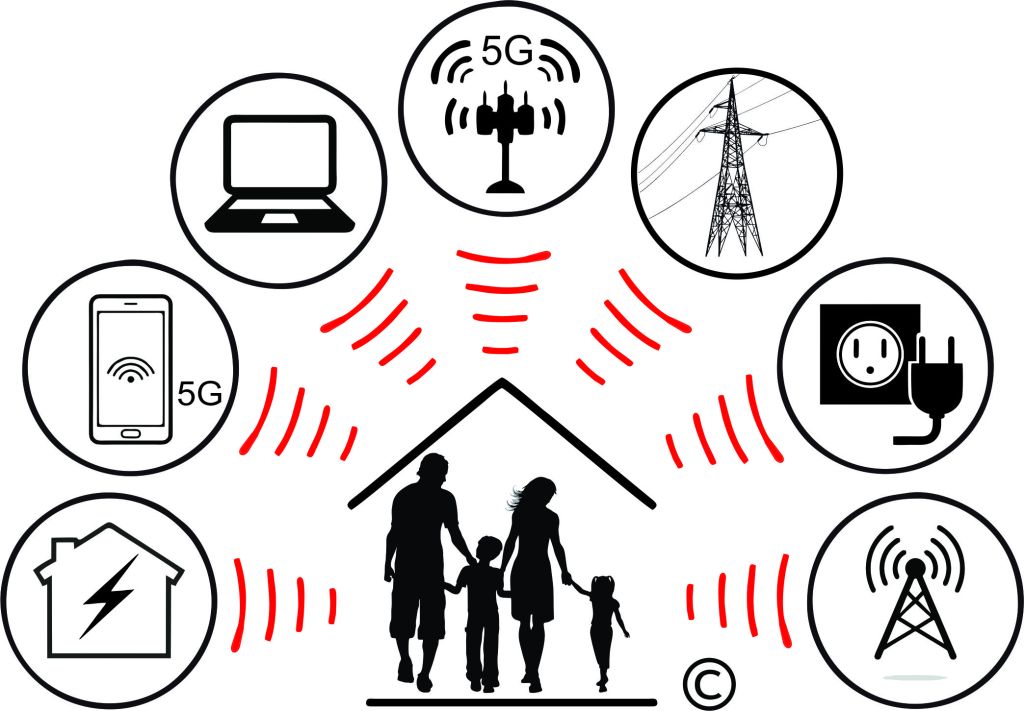 Electromagnetic fields (EMFs) are a type of electromagnetic radiation emitted by almost everything electrical or electronic in our modern world. EMF sources include power lines, transformers, electric panels, electrical wiring in homes, computers, lights, clocks, appliances, televisions, hairdryers, cell phones, cordless phones, microwave ovens, Wi-Fi, wireless routers, wireless computer hardware, cell towers, TV/radio broadcast towers, Smart Meters, etc., etc.